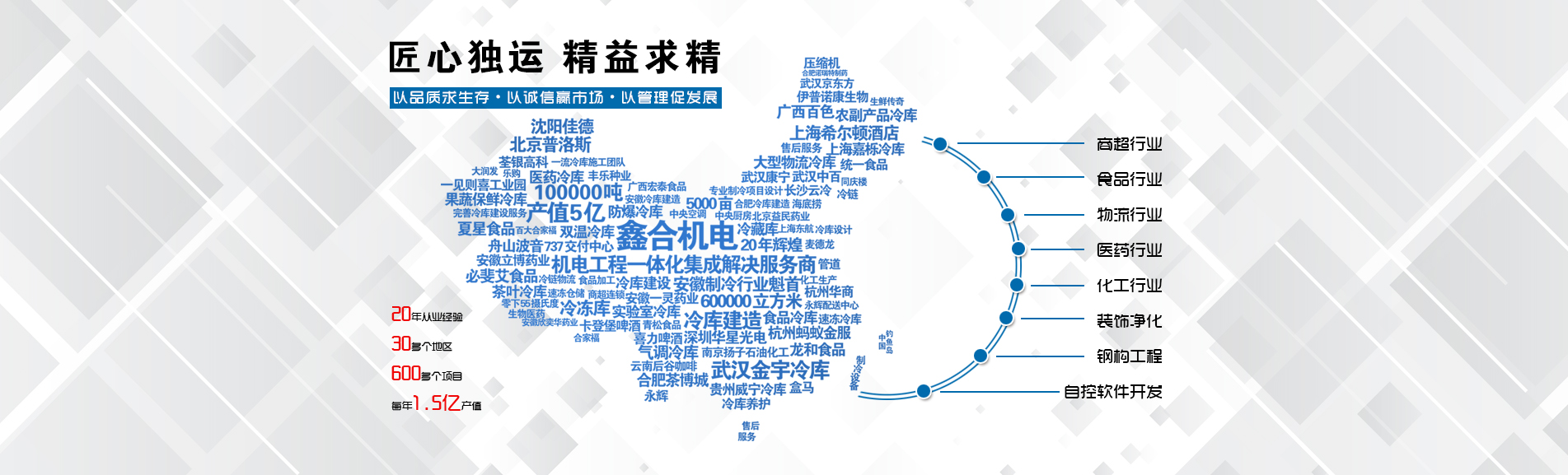 安徽鑫合機(jī)電設(shè)備有限公司于2002年組建運(yùn)營,專業(yè)從事冷凍、冷藏庫、中央空調(diào)、醫(yī)藥凈化工程的規(guī)劃設(shè)計、施工承建、售后服務(wù)為一體的綜合性工程公司,與100多家實力雄厚的大中型企業(yè)建立長期產(chǎn)略合作關(guān)系,其中有多家世界500強(qiáng)和上市企業(yè)。公司作為中國倉儲與配送協(xié)會會員單位、安徽省制冷學(xué)會理事單位、上海楊浦區(qū)制冷協(xié)會工程總承包負(fù)責(zé)單位,引領(lǐng)于行業(yè)前沿。我們將銘記給予我們大力支持的各界新老朋友及合作伙伴,我們將會保持“互惠互利、共同發(fā)展”的原則與您共創(chuàng)雙嬴的合作關(guān)系。